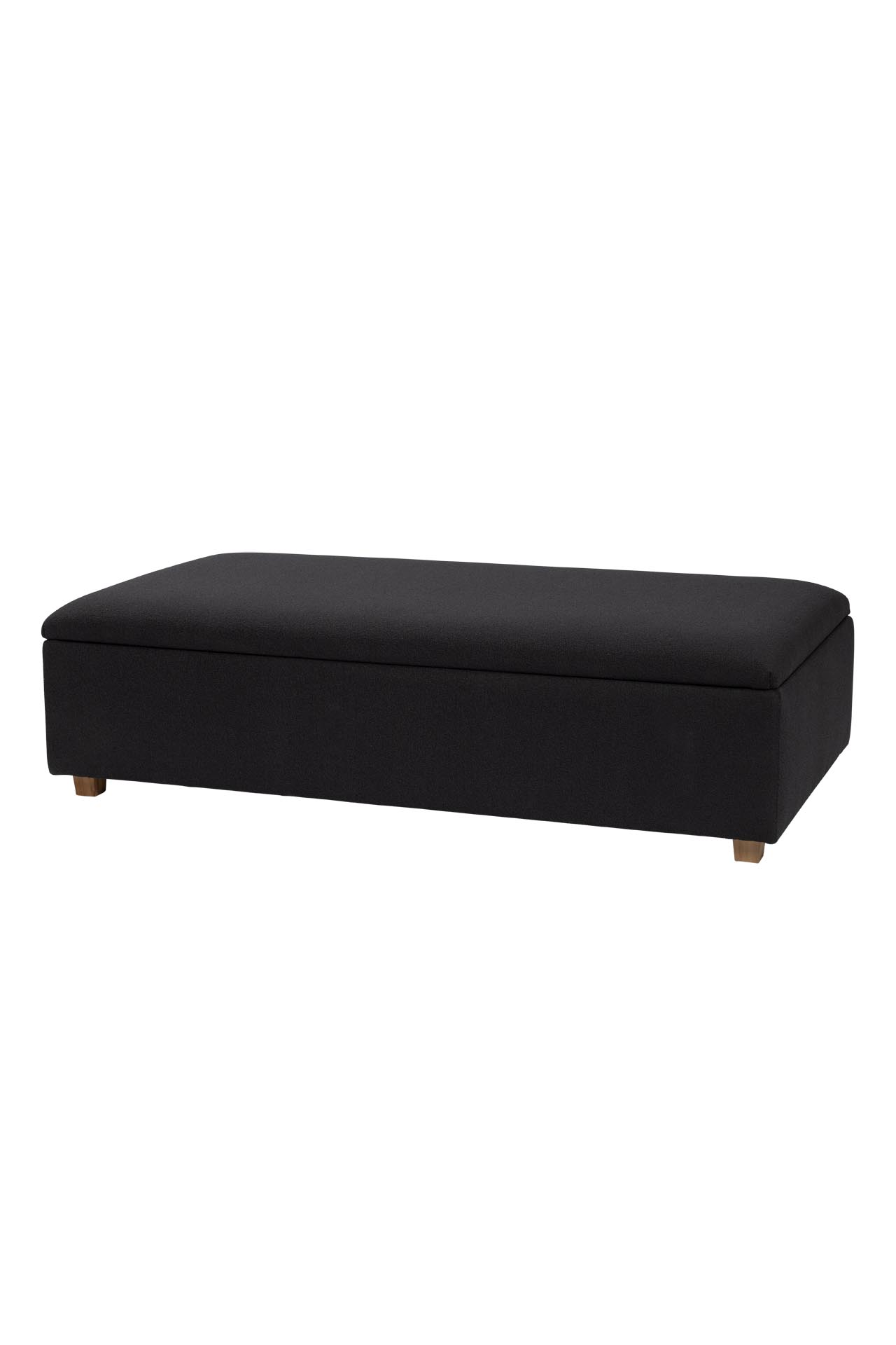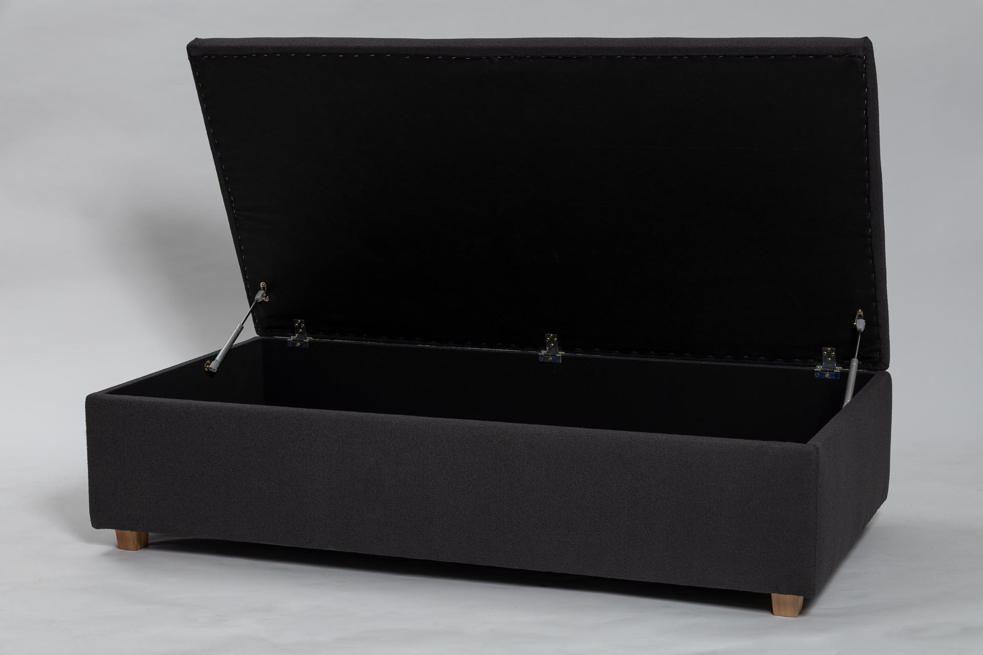 The Paris upholstered storage table is a large fully upholstered rectangular storage table with hardwood feet and a hinged upholstered top which opens up, on gas structs, to a fully lined interior, perfect for additional living space storage.
