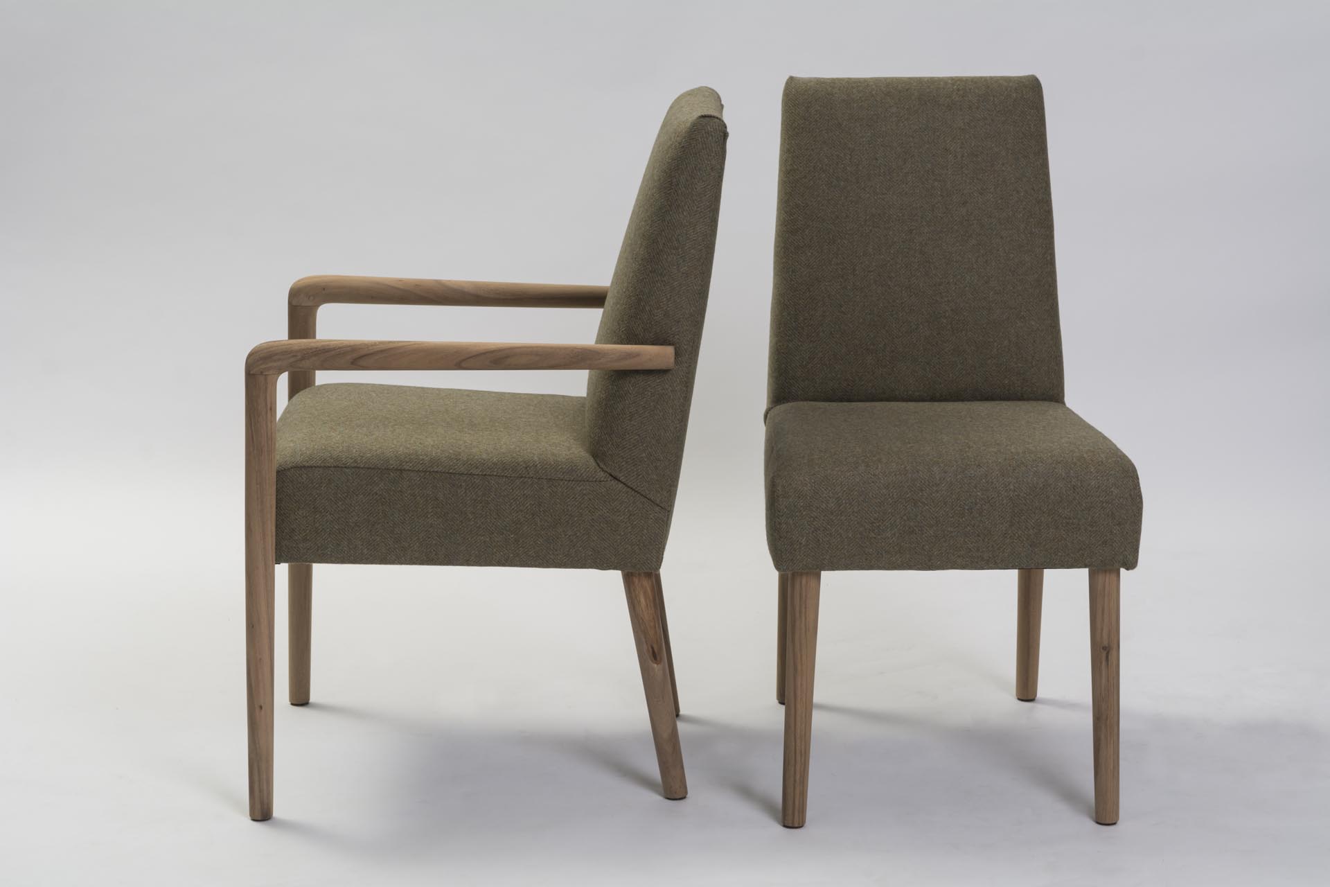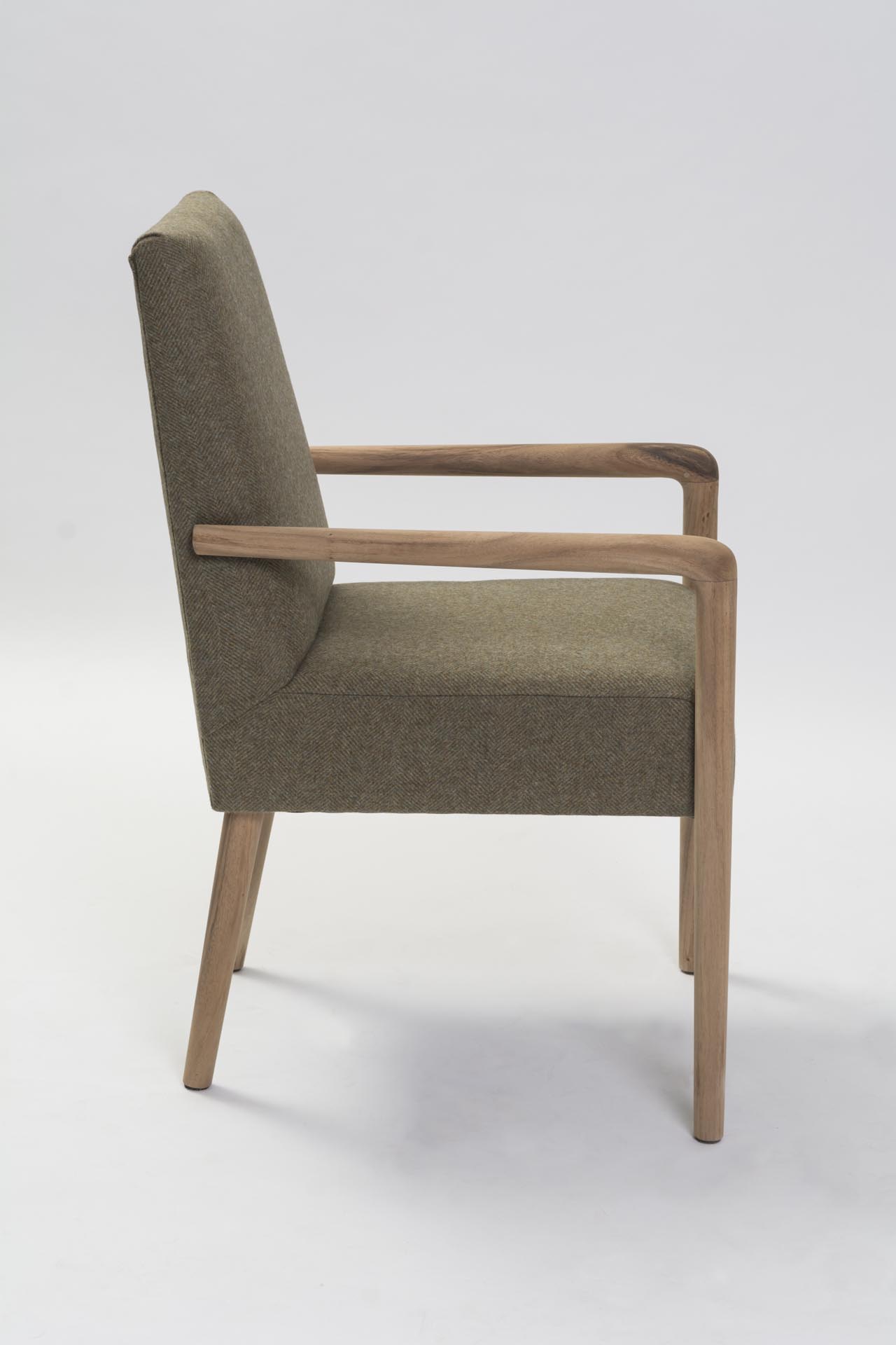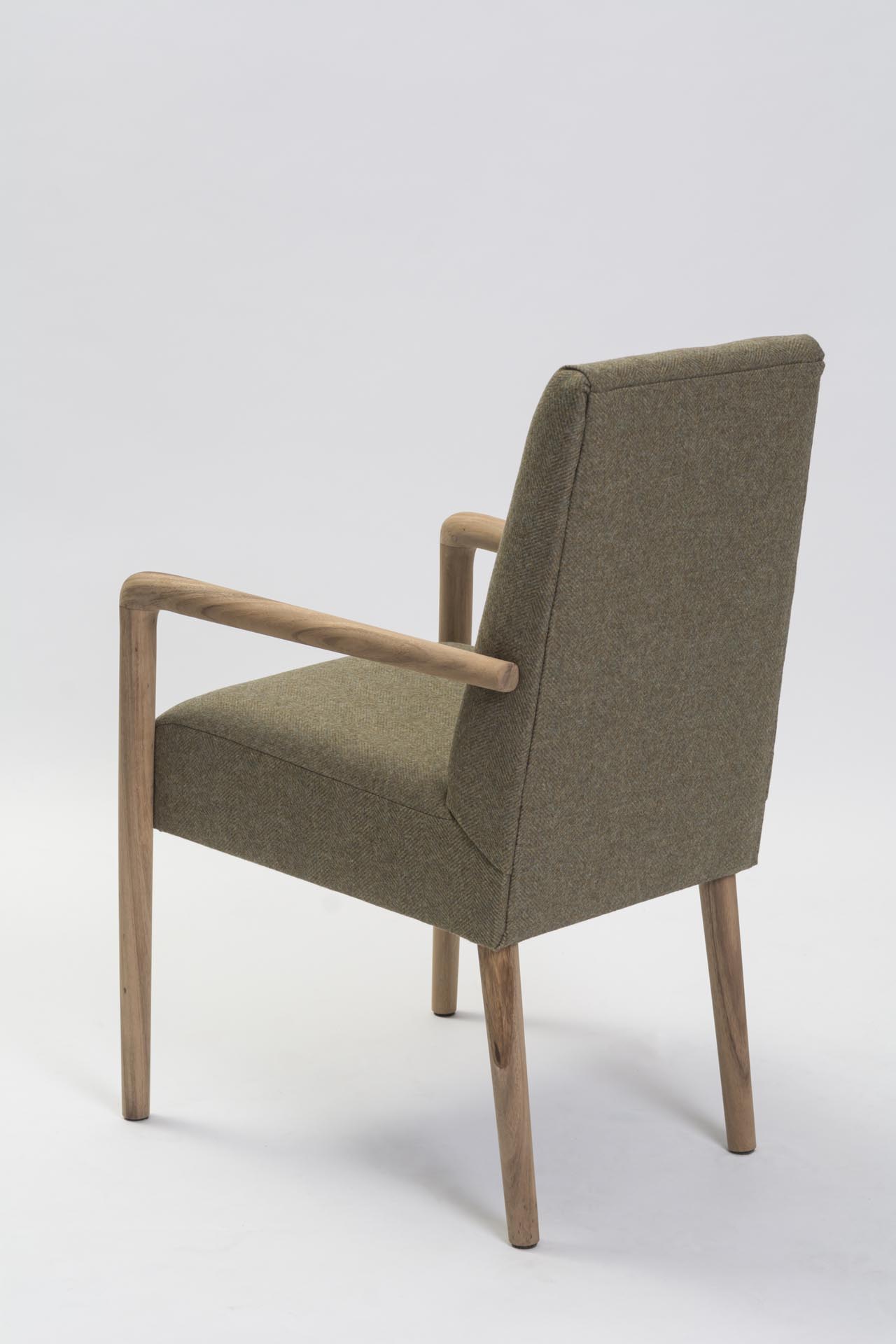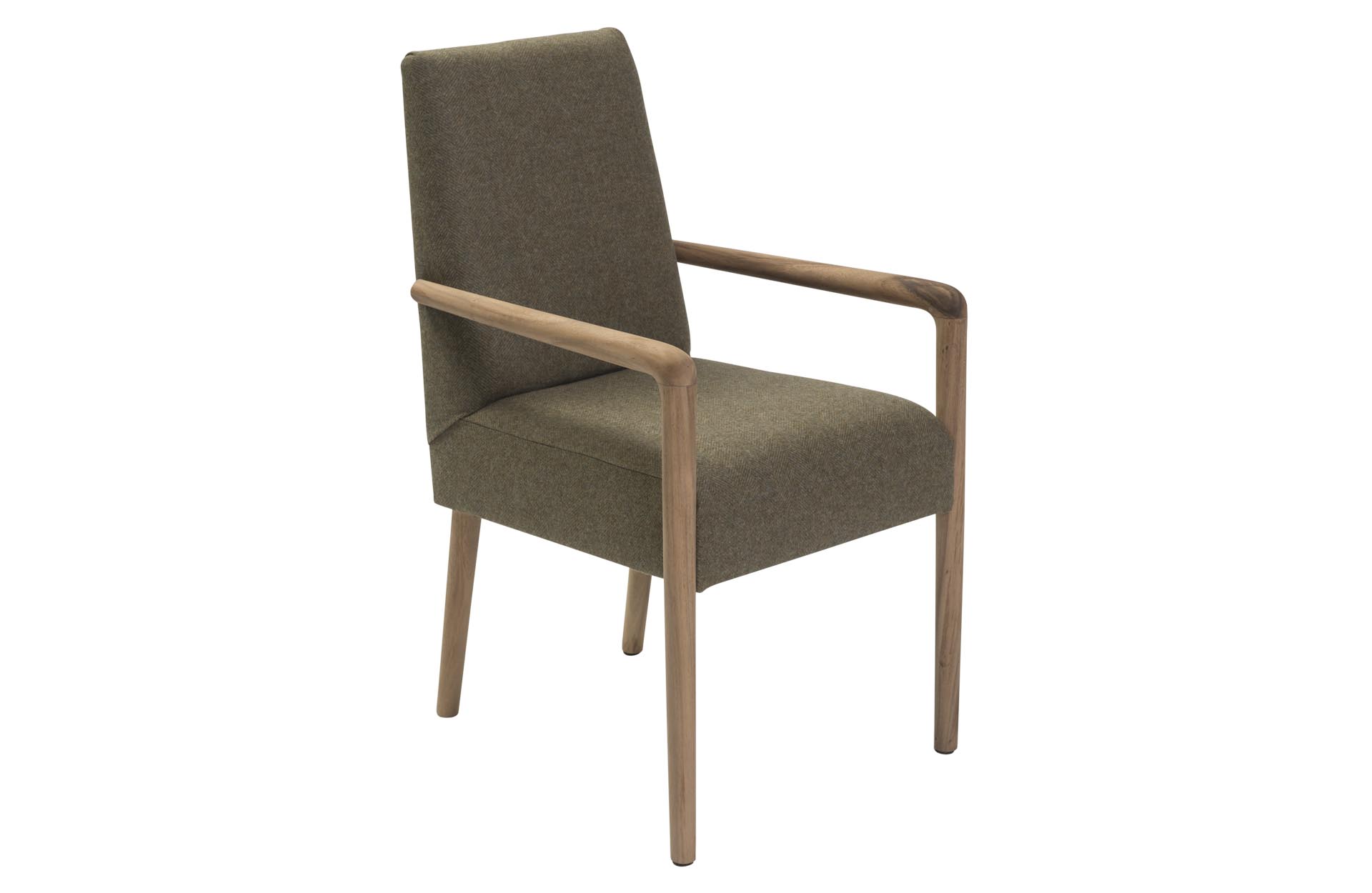 The Shoreditch dining armchair is a fully upholstered dining chair with ergonomically tapered arms and legs in plantation teak. Made with a solid hardwood frame the Shoreditch has a generously cushioned foam seat and back, ensuring a supremely comfortable chair for dining.