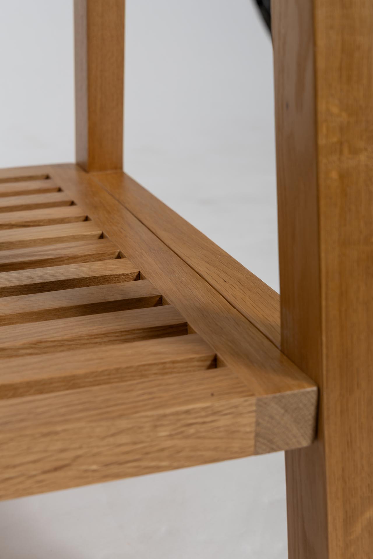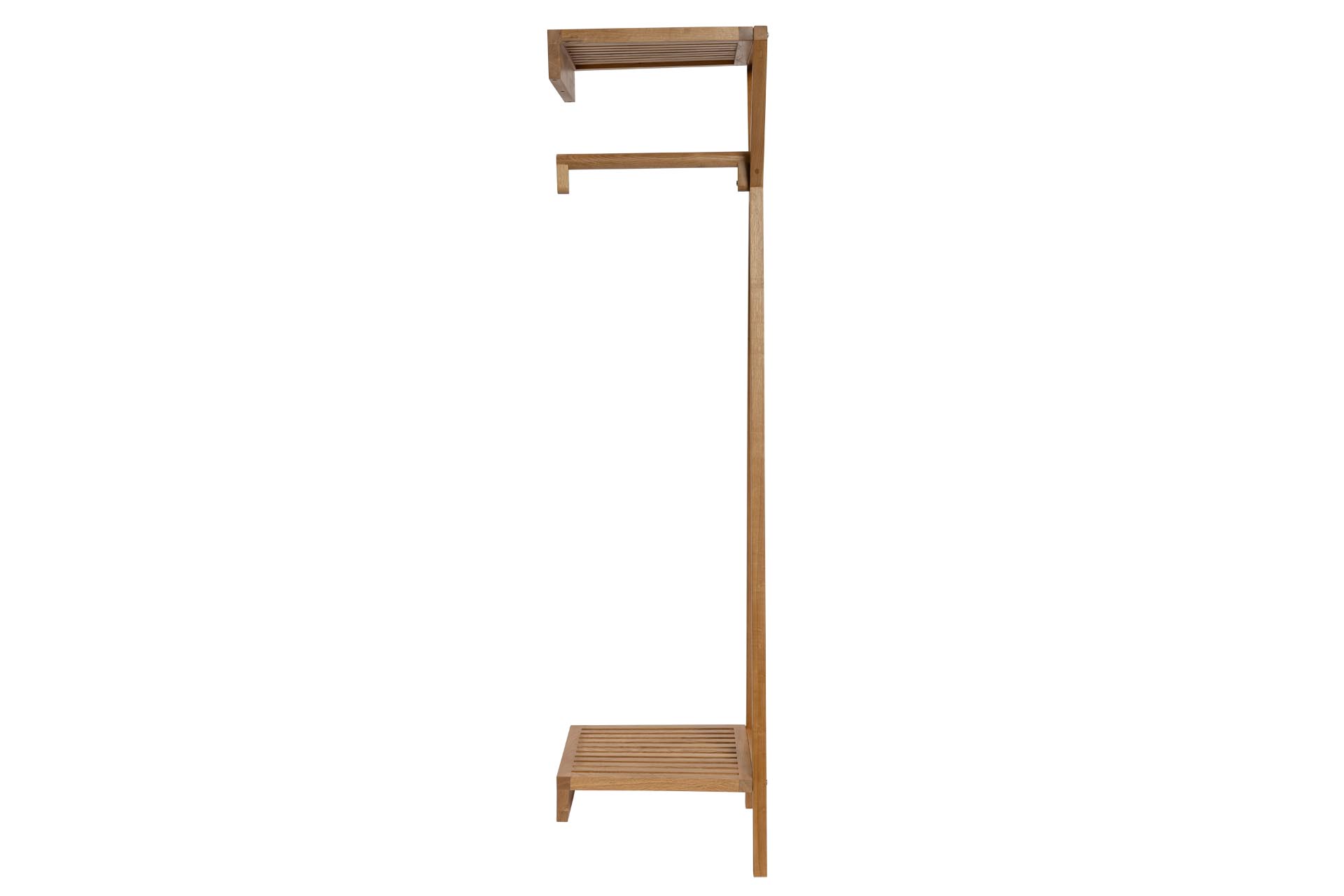 The Totem has an open clothes rail for hanging storage and a lower slatted shelf for bags, blankets or shoes and an upper slatted shelf for additional storage.