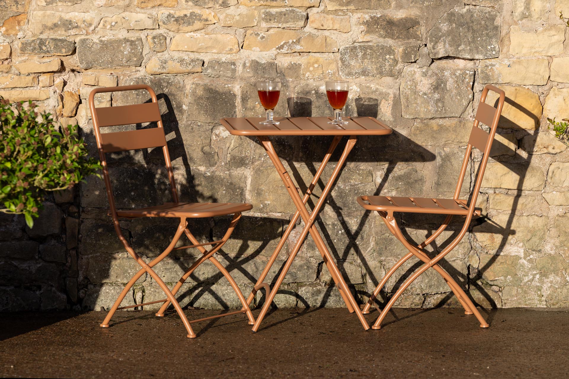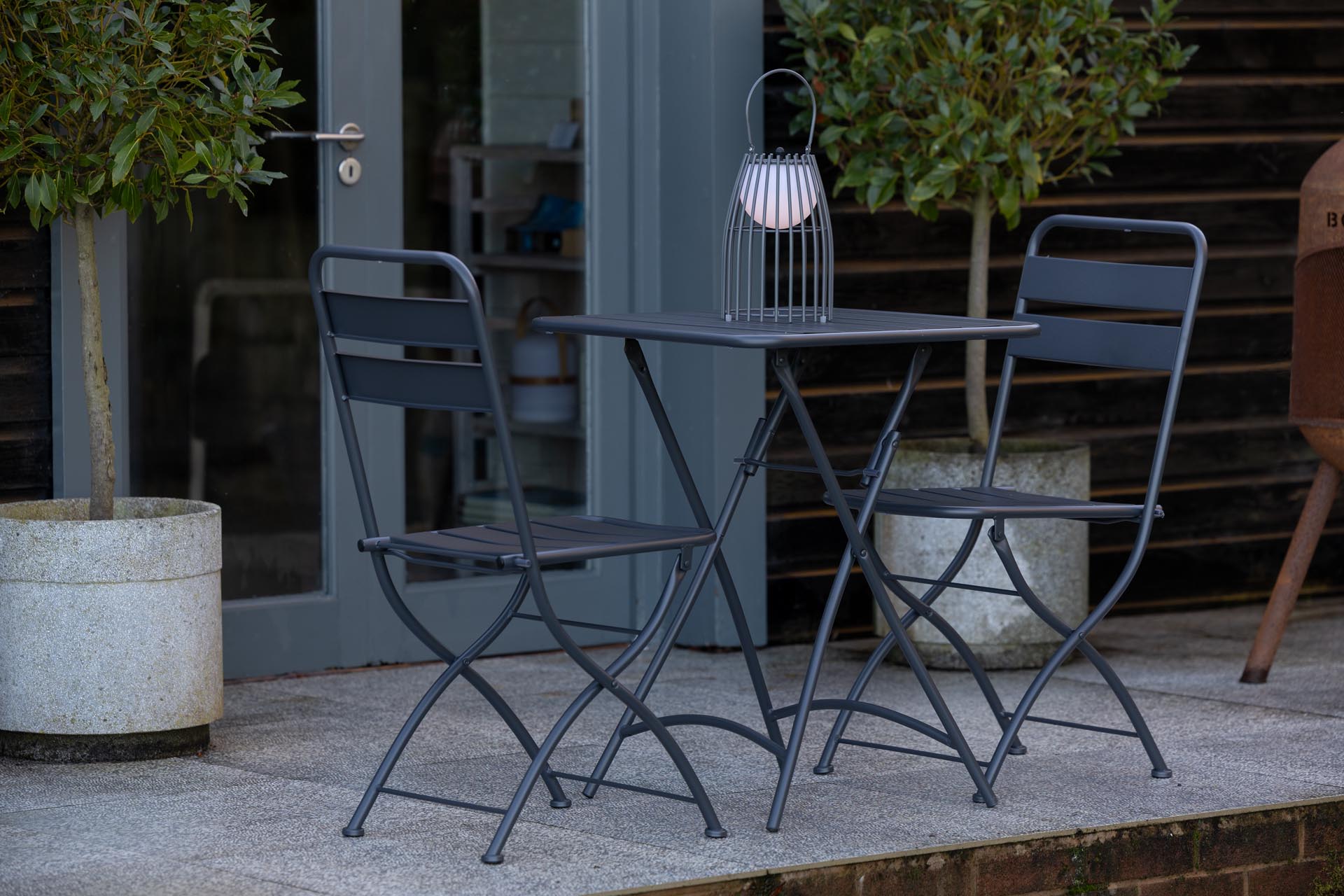 The Trattoria are a stylish contemporary bistro set, consisting of a folding table and two folding chairs, made in four fresh contemporary colours.