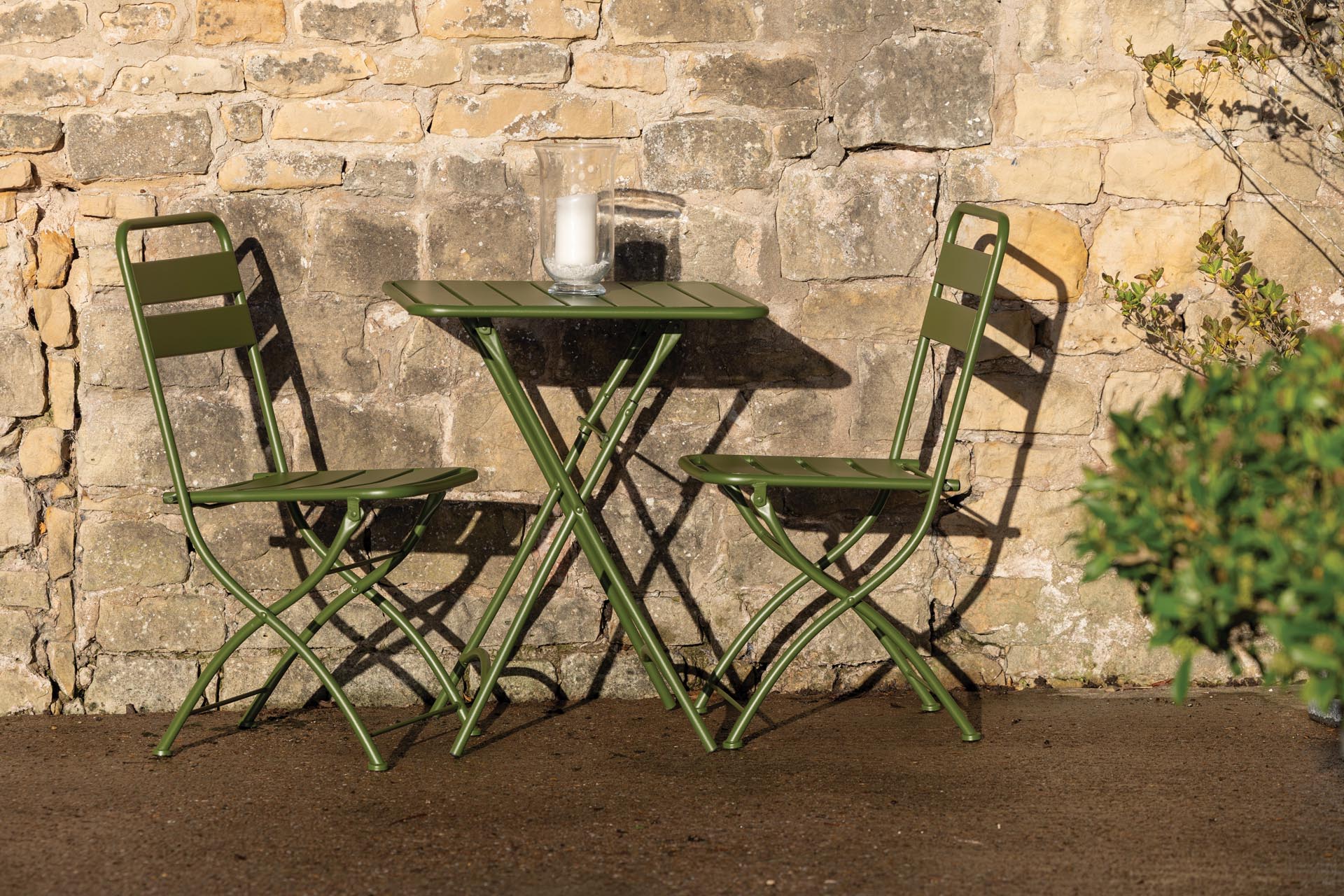 As the table and chairs fold completely flat they are ideal for situations where outdoor furniture has to be put away, whether on a daily or a seasonal basis.