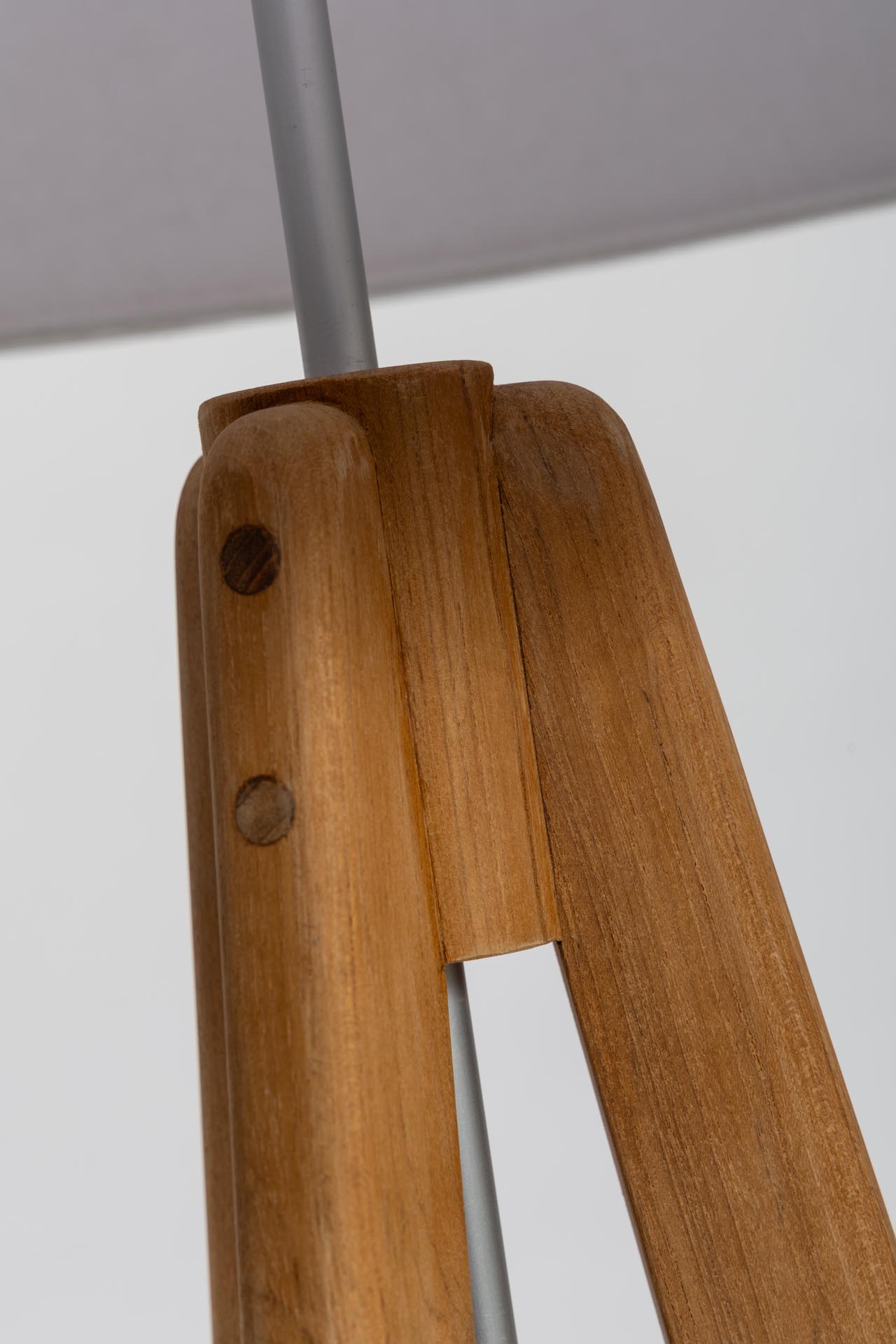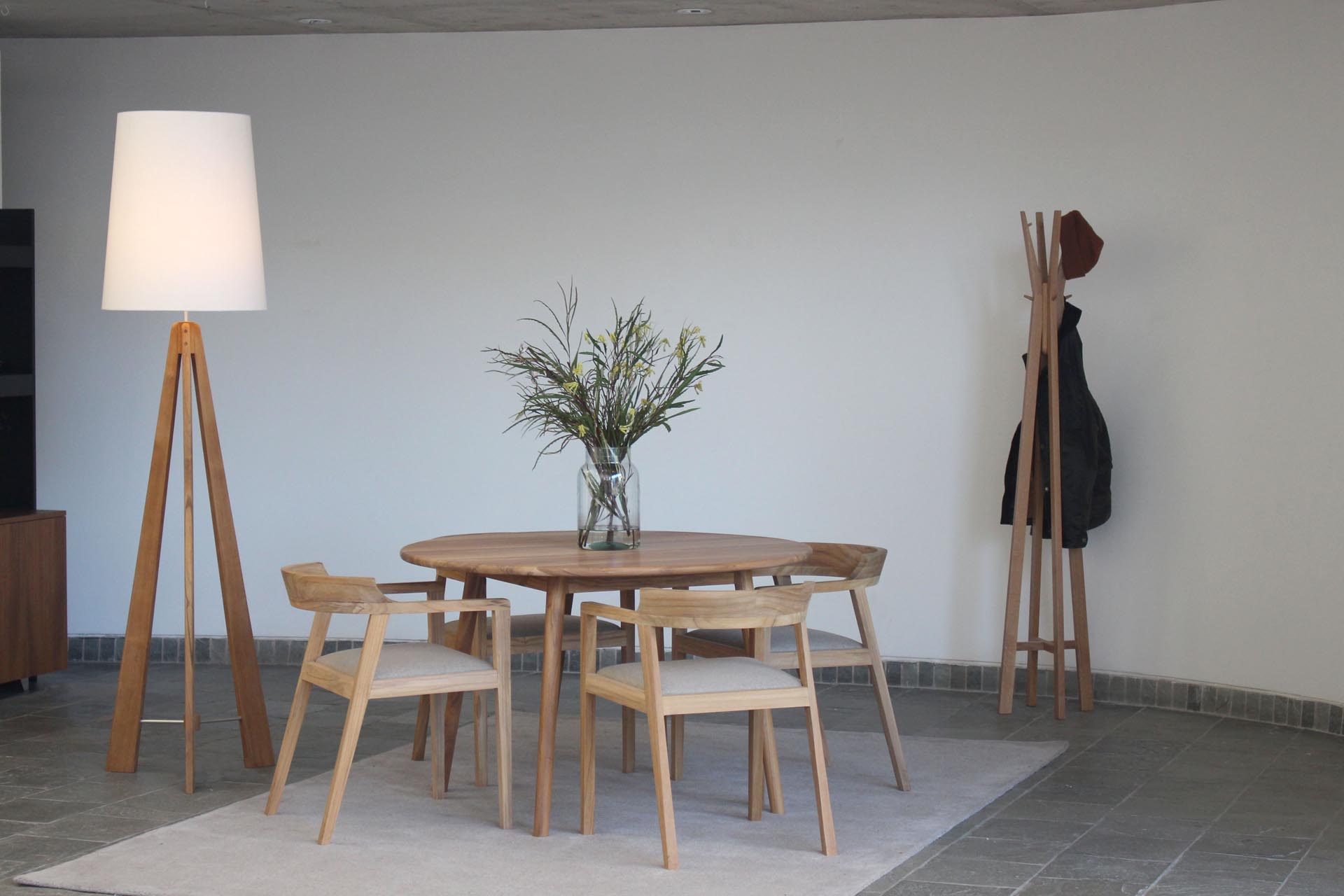 Manufactured in teak, with tapered wooden fin like uprights, anodised steel central pole and braided cable with foot-switch, the Tri makes a big impression.