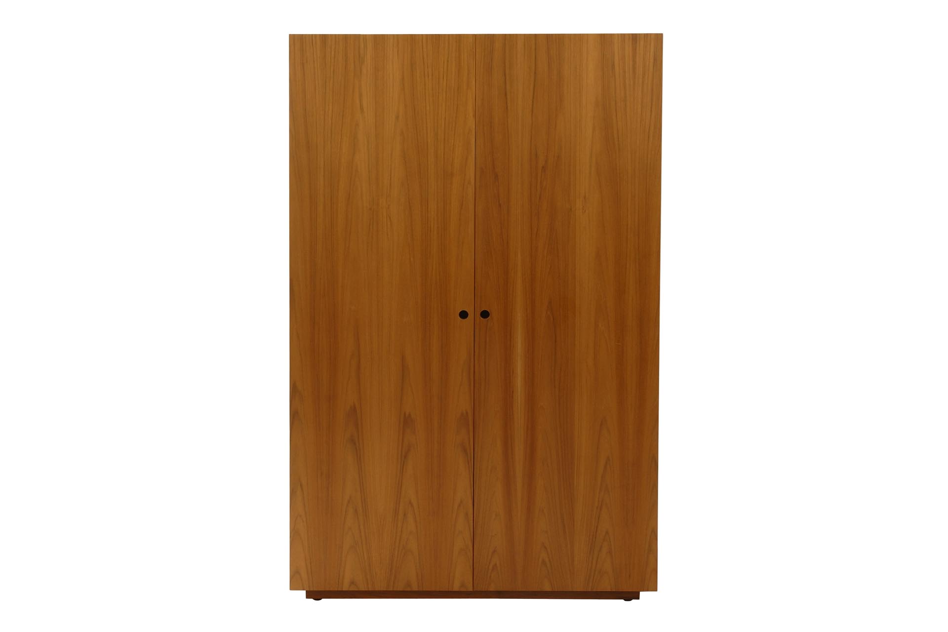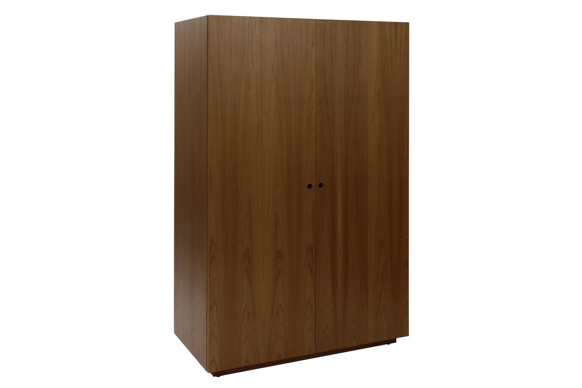 The Walter wardrobe is a contemporary double wardrobe with an internal clothes rail and upper shelf. Partly inspired by modernist design the wardrobe has a pared back aesthetic, with a focus on clean contemporary lines and the warm wooden tones of the very high quality veneer.